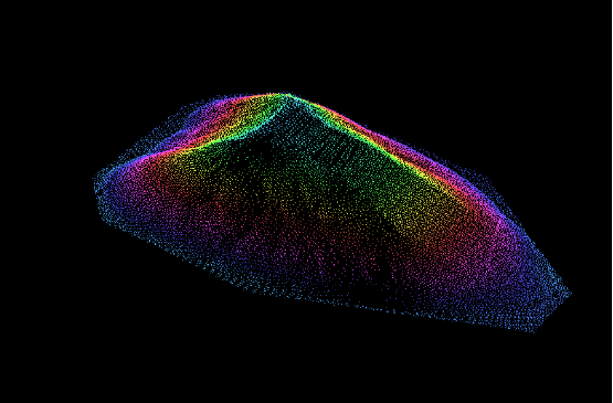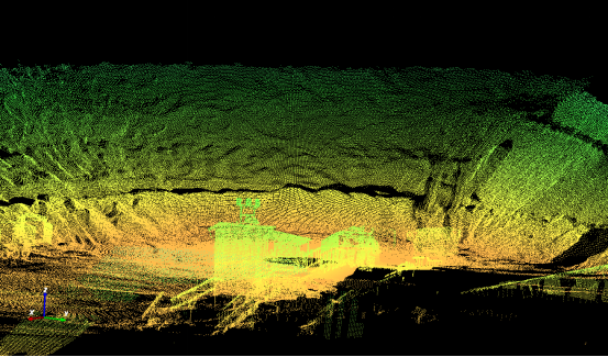 由上圖可見(jiàn)鹽堆的車轍、雨水沖溝均清晰可見(jiàn)。細(xì)節(jié)表現(xiàn)清晰,為高精度體積計(jì)算提供了保證。掃描作業(yè)高效快捷(單站360°掃描耗時(shí)約3分鐘),這是常規(guī)測(cè)繪儀器所不能比擬的。