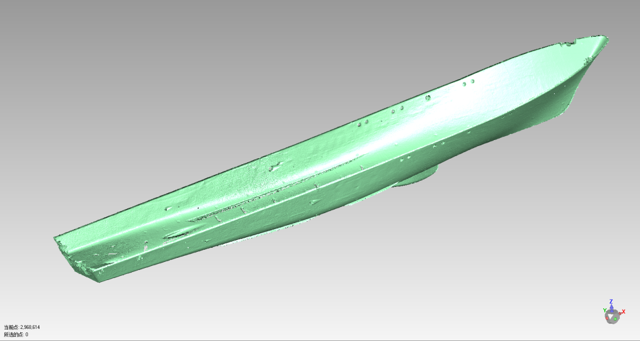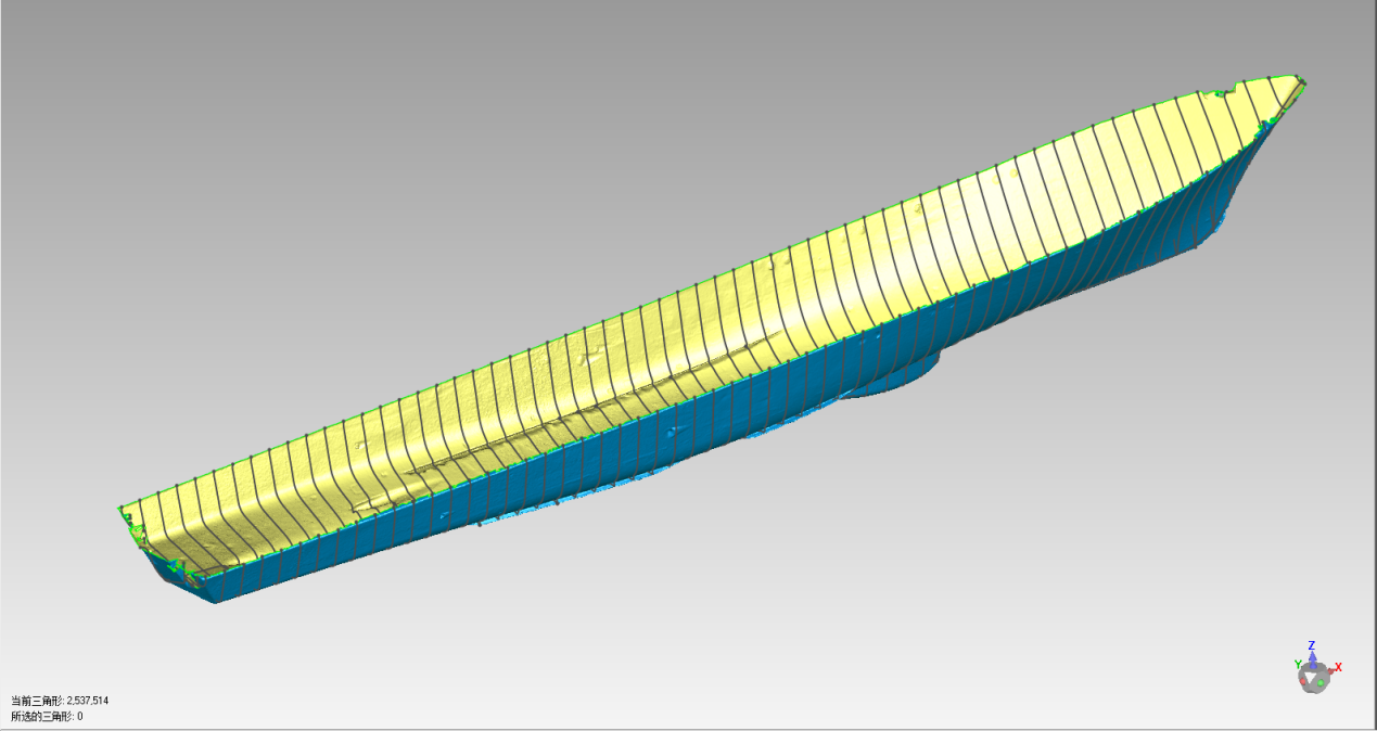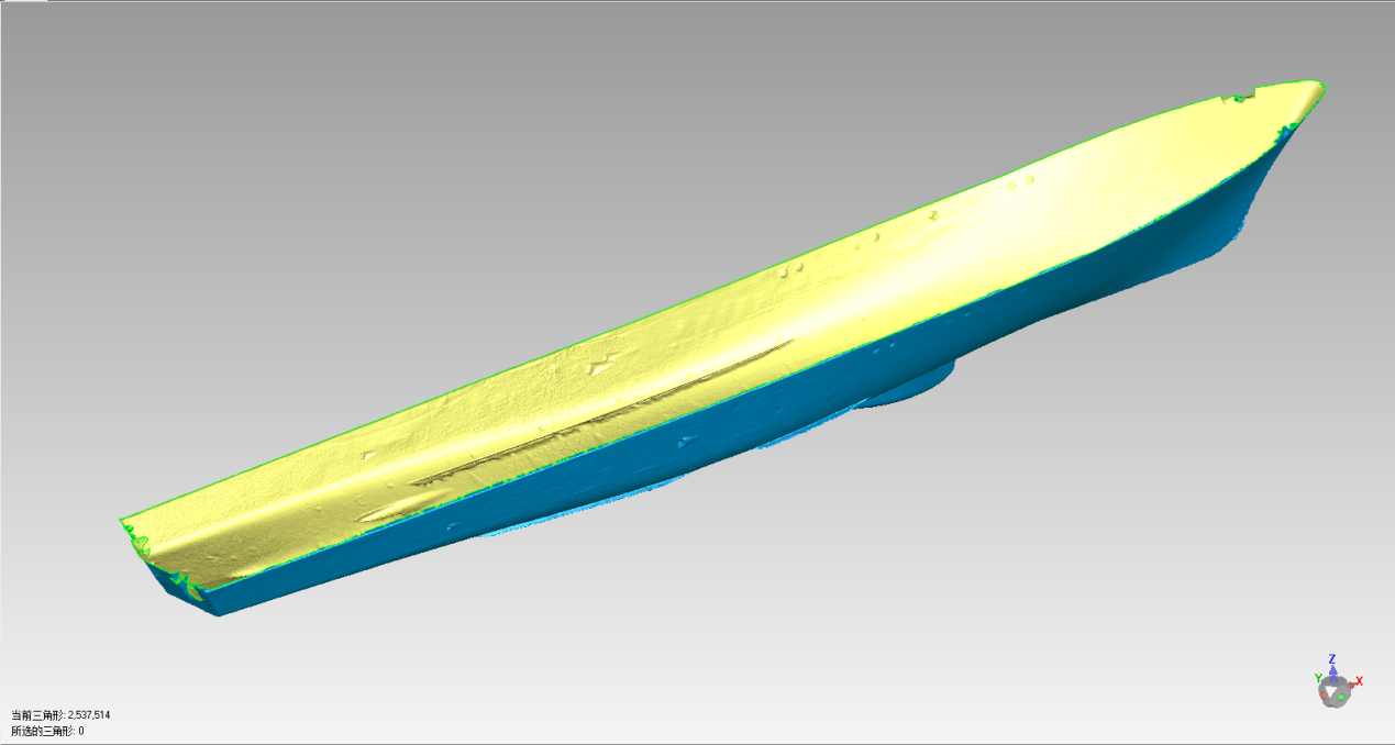 某船廠委托船舶設(shè)計(jì)單位,對(duì)位于印尼的一艘舊船進(jìn)行掃描,獲取船體龍骨線,與設(shè)計(jì)圖對(duì)比后,確定船體受損位置。