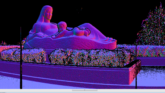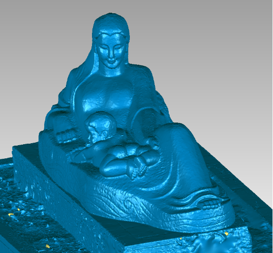 項(xiàng)目以“黃河母親”像為對象進(jìn)行掃描,要求精細(xì)化掃描后建立三維模型,并對數(shù)據(jù)進(jìn)行存檔,以方便后續(xù)的文物保護(hù)工作。外業(yè)掃描共8站,耗時約2小時,內(nèi)業(yè)耗時1天。