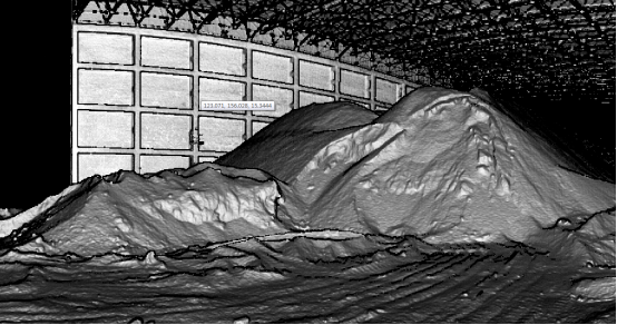 從以上掃描點(diǎn)云圖可以看出,X300掃描儀對堆體細(xì)節(jié)模擬非常詳細(xì),因此最大程度的保證了體積計(jì)算結(jié)果的精度,這是常規(guī)測量手段所不能比擬的。