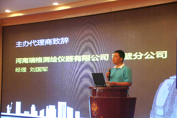 河南瑞格測(cè)繪儀器有限公司鶴壁分公司經(jīng)理劉國(guó)軍先生發(fā)表致辭,感謝廣大來(lái)賓對(duì)瑞格測(cè)繪、對(duì)思拓力的支持。瑞格測(cè)繪銷售網(wǎng)點(diǎn)覆蓋河南8個(gè)地市,可以更好的為用戶提供星級(jí)服務(wù)。