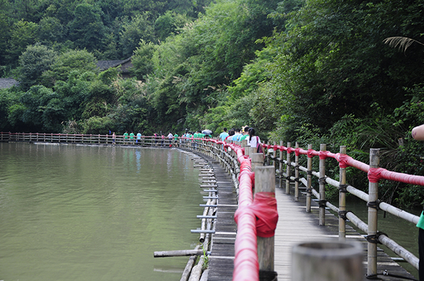 在遇龍河,乘著竹筏感受河岸兩側(cè)的秀美風(fēng)景,一起打水仗嬉鬧。▼
