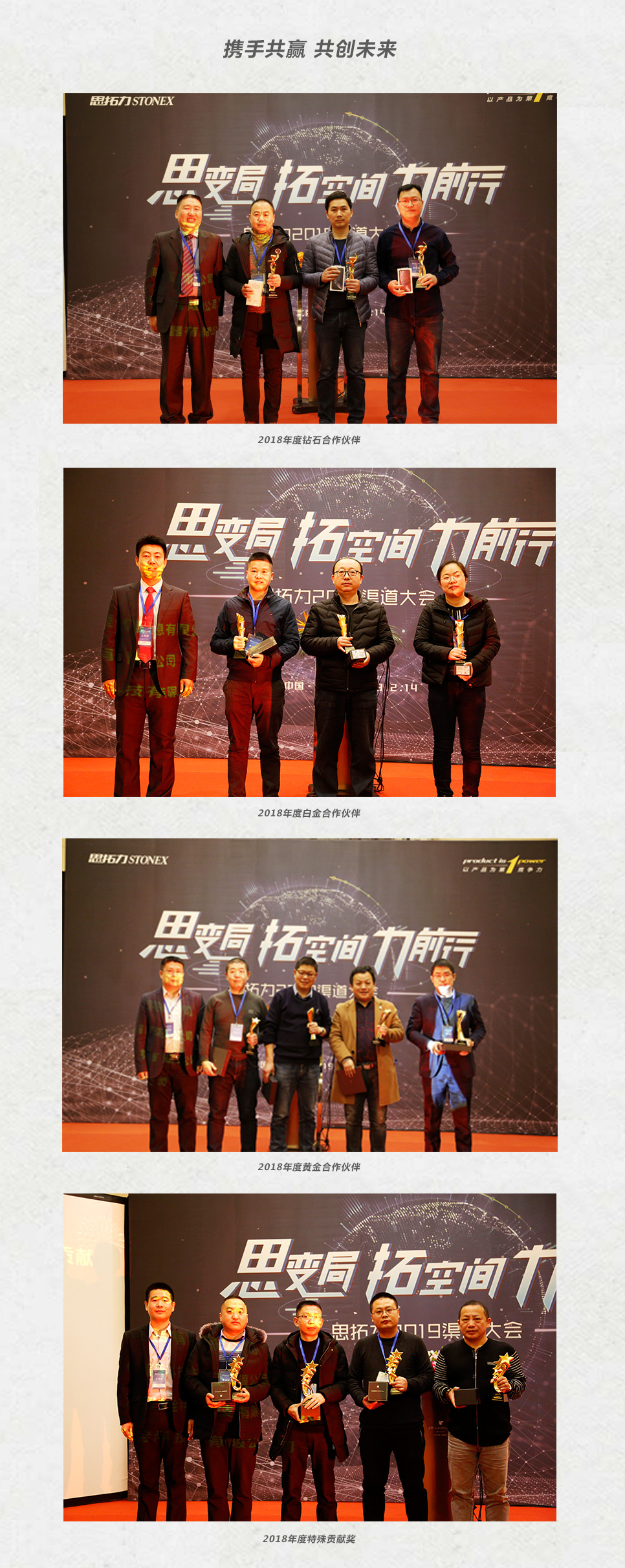 此次渠道大會上,還對榮獲思拓力2018年度鉆石合作伙伴、白金合作伙伴、黃金合作伙伴以及特殊貢獻(xiàn)獎的優(yōu)秀合作伙伴進(jìn)行了表彰。