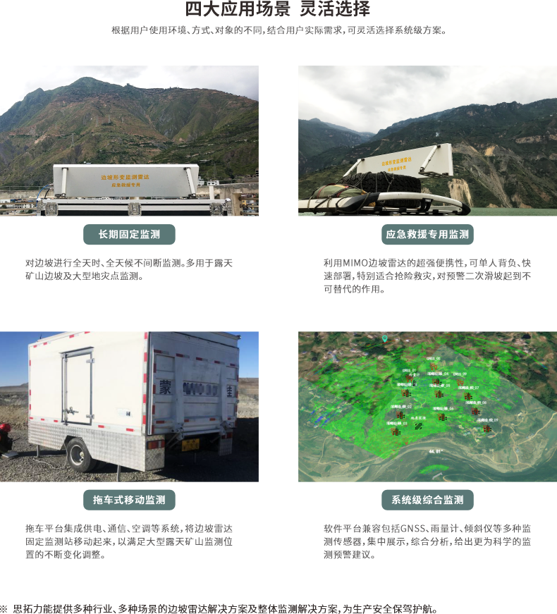 提供多種行業(yè)、多種場(chǎng)景的邊坡雷達(dá)解決方案及整體監(jiān)測(cè)解決方案,為邊坡安全保駕護(hù)航。